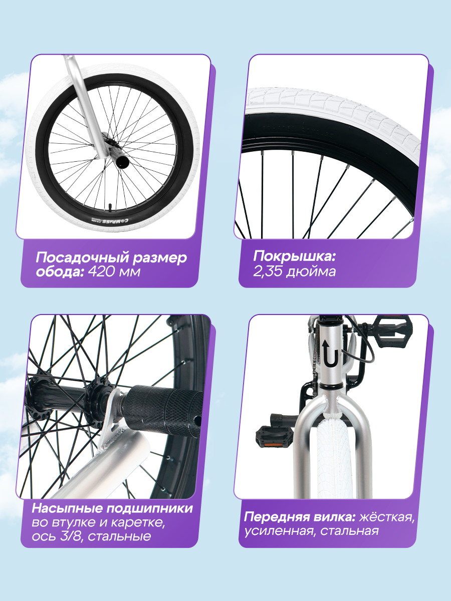 Велосипед детский двухколёсный трюковой, цвет серебро. Колёса 20 дюймов. Максимальный вес 60кг (арт. ВЛ-1198): сравнение цен, характеристики, фото, актуальное наличие и цены.