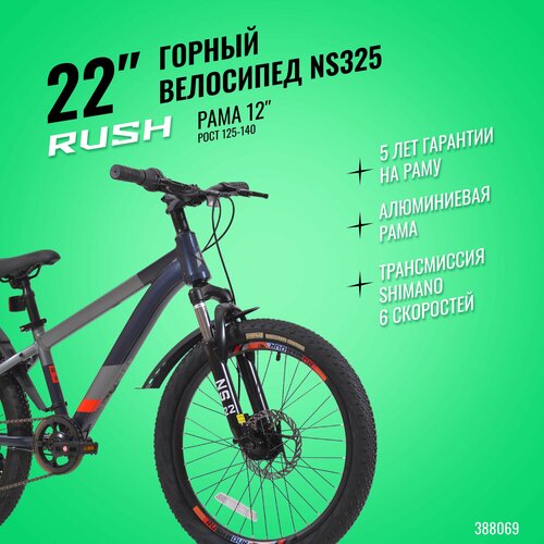Велосипед детский горный дисковый 22″ рост 125-140см 6 скоростей серый рама 12″ велик 6 лет 7 лет 8 лет переключатель SHIMANO скоростной RUSH HOUR NS 325: сравнение цен, характеристики, фото, актуальное наличие и цены.