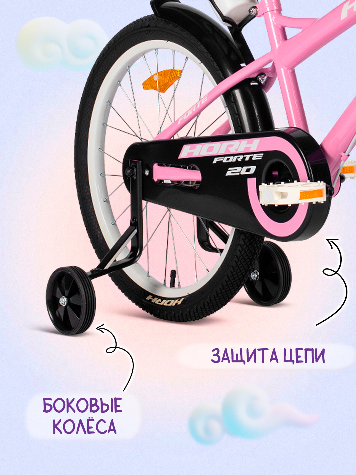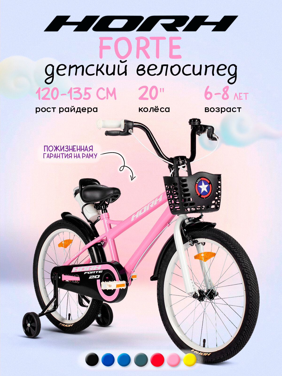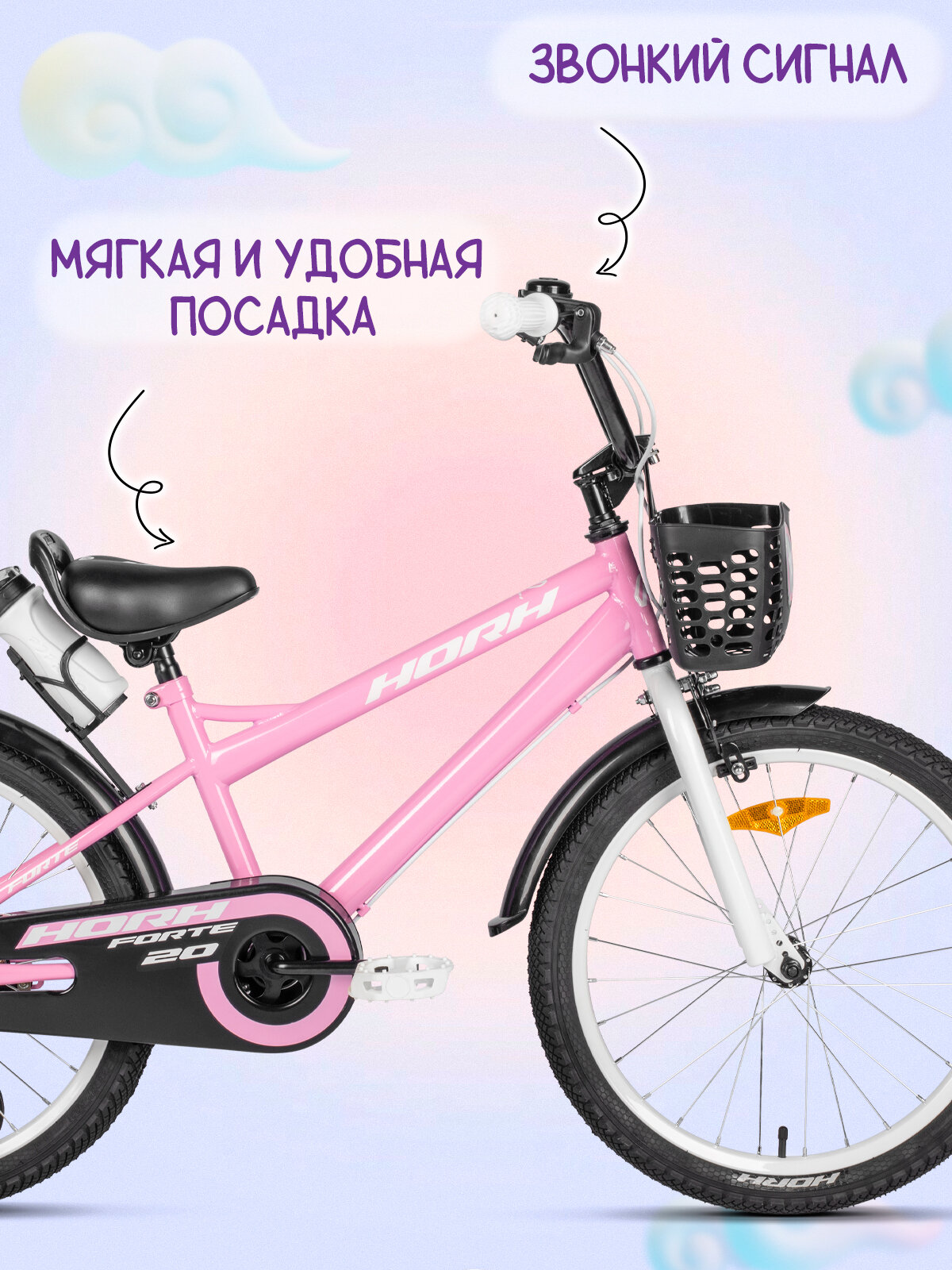 Велосипед детский HORH FORTE 20 (2025) Pink/розовый, на рост 120-135 см, сталь, барабанный тормоз+V-brake тормоз,: сравнение цен, характеристики, фото, актуальное наличие и цены.