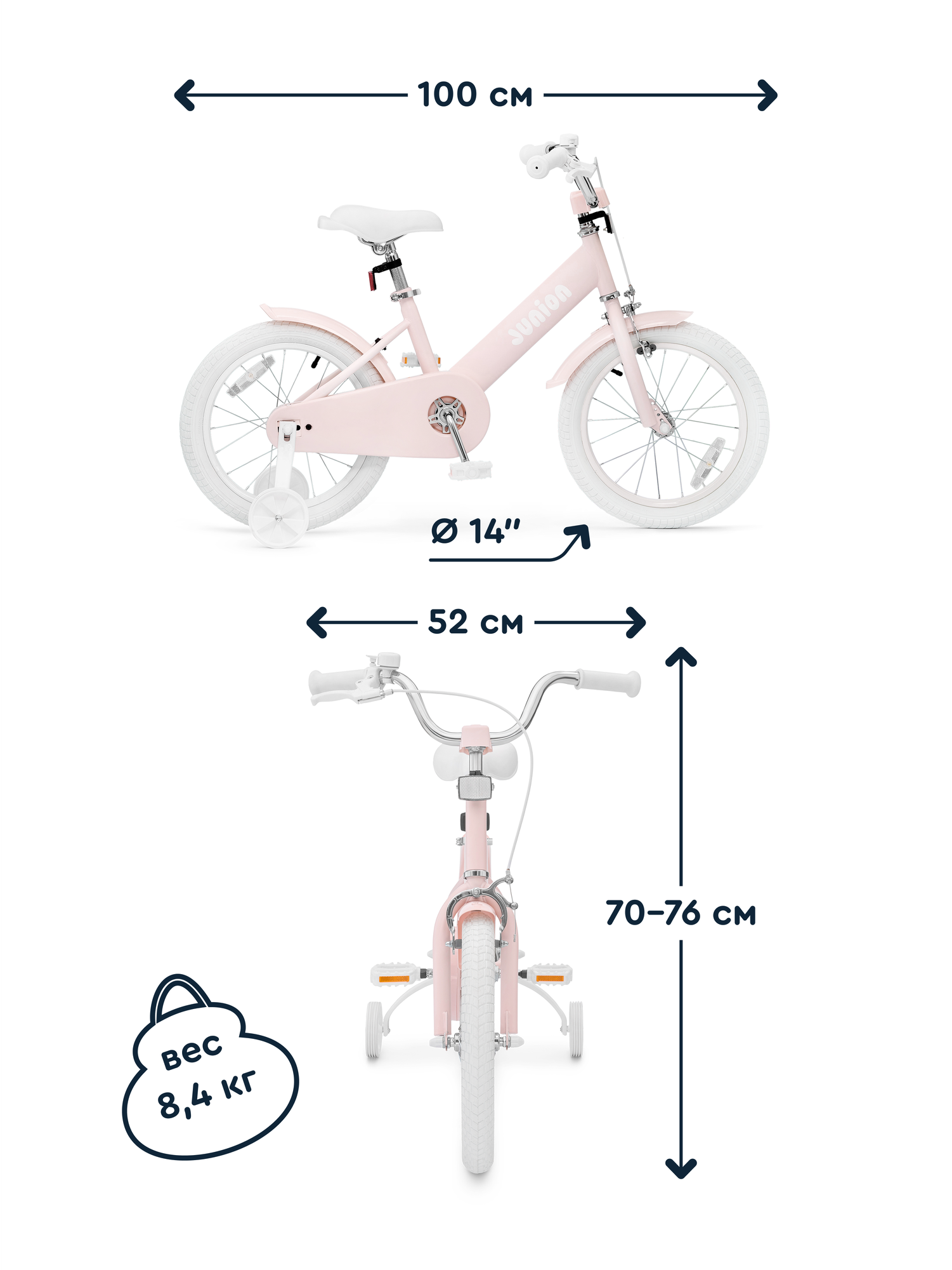 Велосипед детский Junion Dainy двухколесный 14″, 2 поддерживающих колеса, 105-120 см, розовый: сравнение цен, характеристики, фото, актуальное наличие и цены.