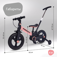 Велосипед детский PushSport 4 в 1, рост от 90 до 110, EVA колеса, 12 дюймов, алюминий