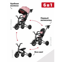 Купить Велосипед детский с ручкой трехколесный складной QPlay 6 в 1 Nova Niello 360°, EVA, розовый с доставкой по всей России.