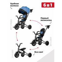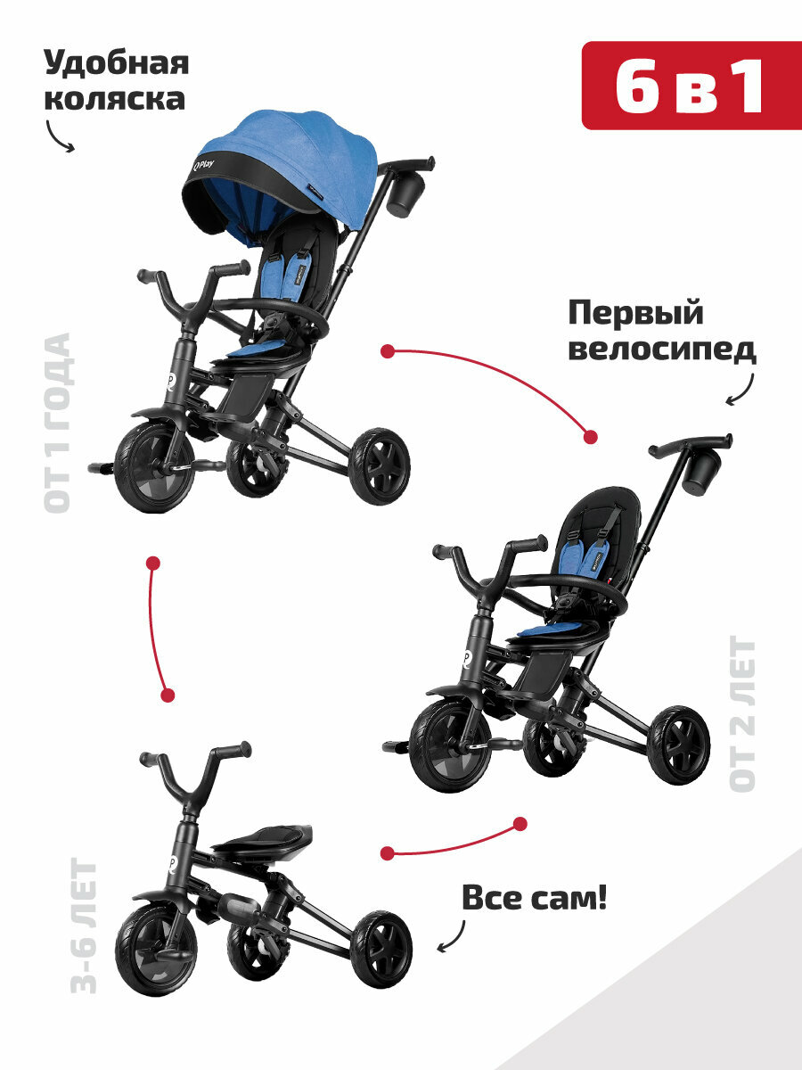 Купить Велосипед детский с ручкой трехколесный складной QPlay 6 в 1 Nova Niello 360° Q-Play, EVA, синий с доставкой по всей России.