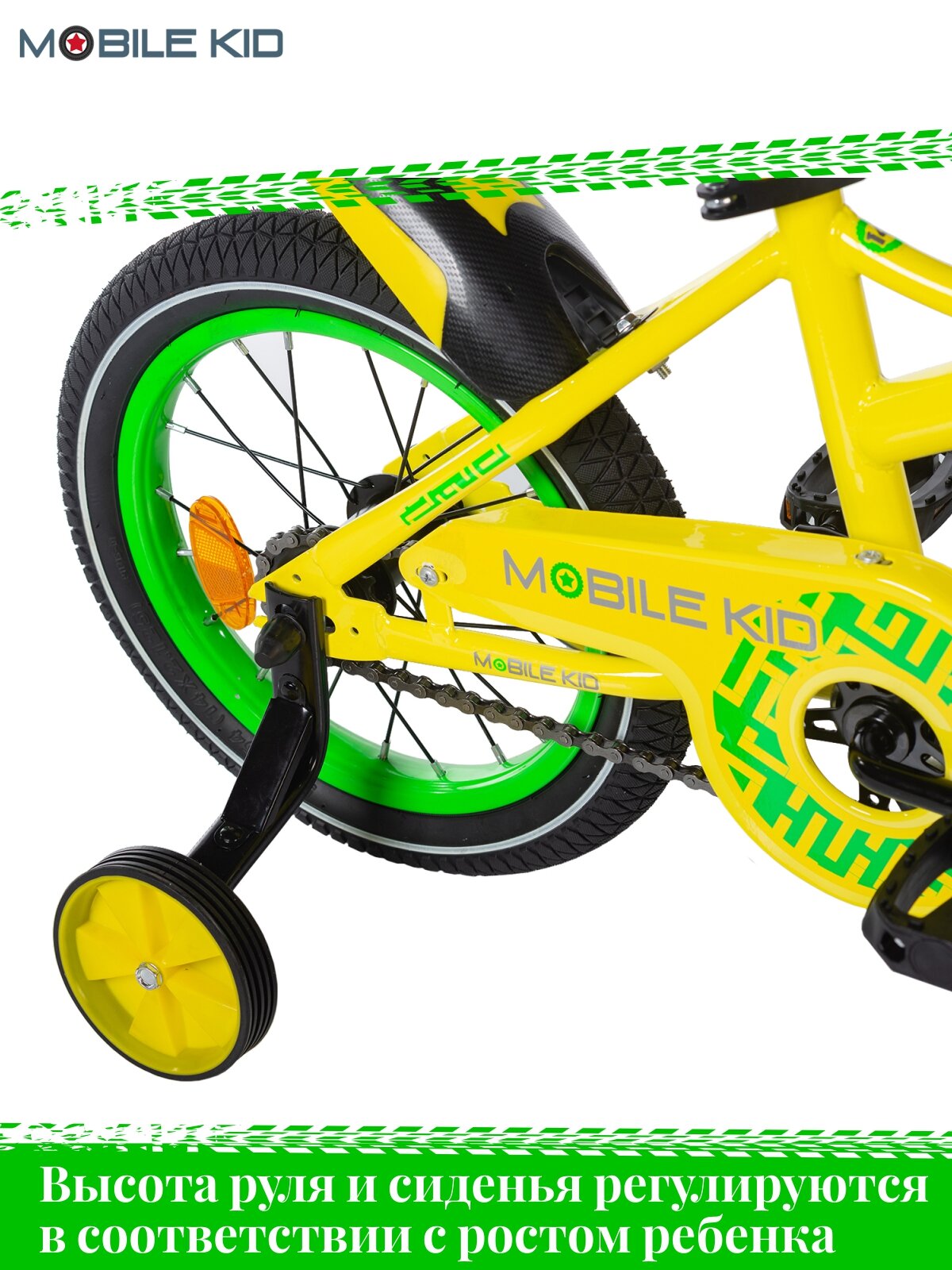 Купить Велосипед детский с тренировочными колесами Mobile Kid Slender, 14 дюймов, желто-зеленый с доставкой по всей России.