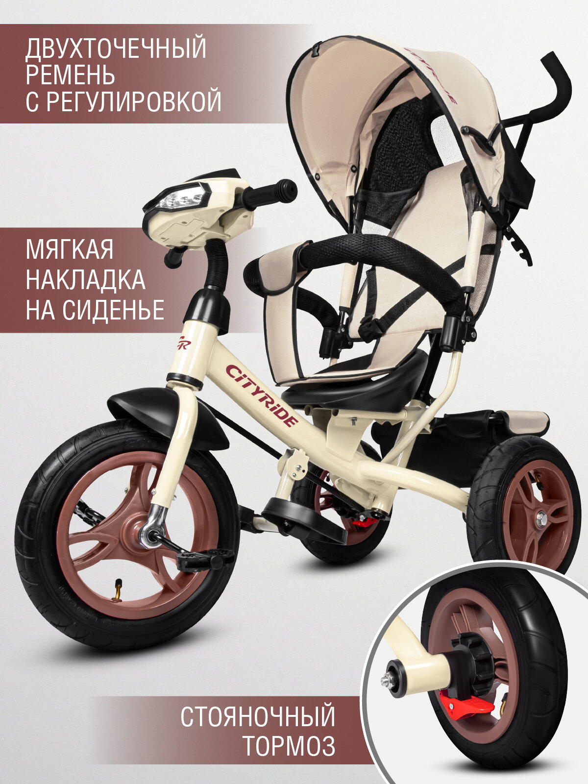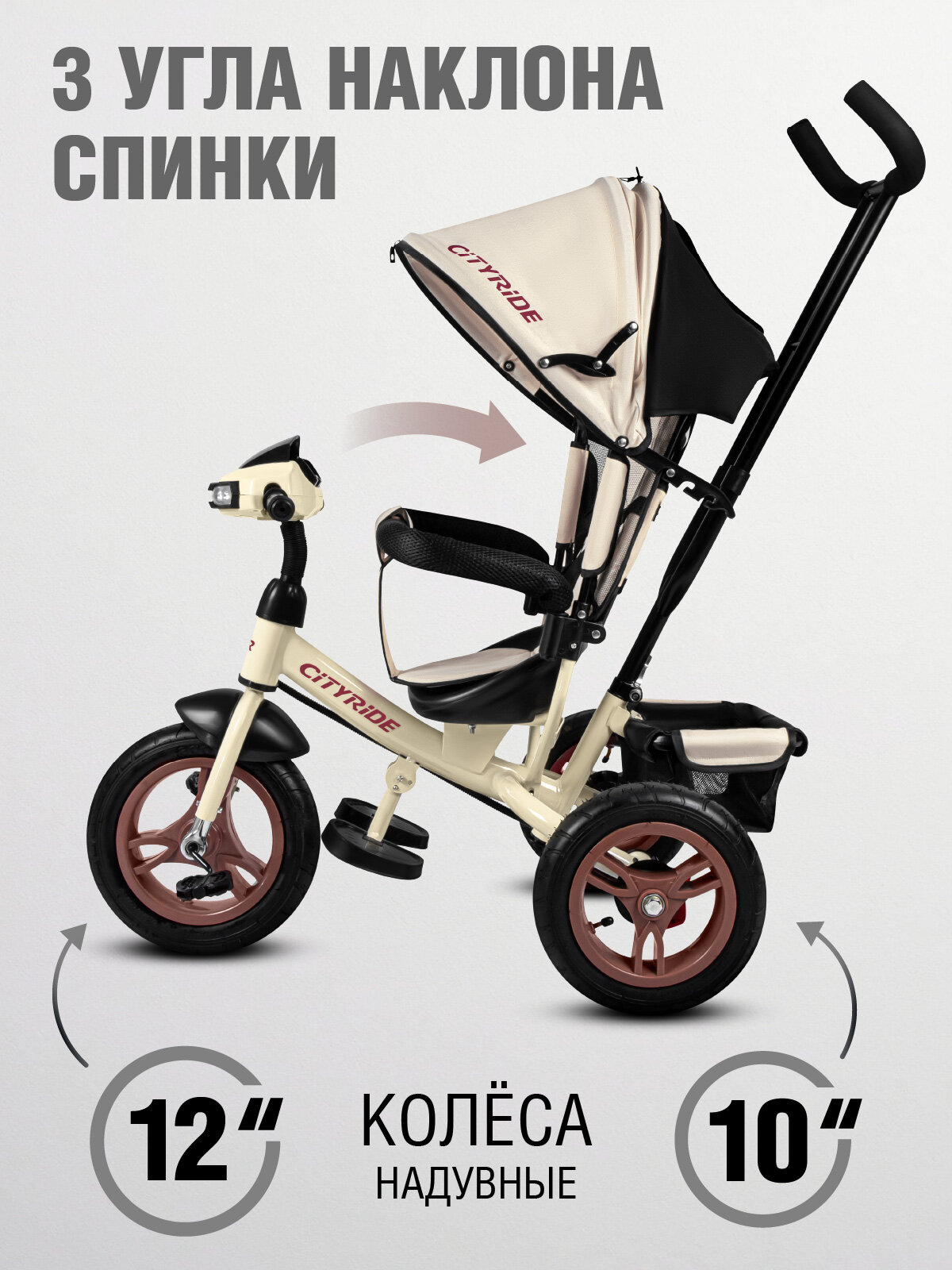 Велосипед детский трехколесный CITYRIDE с фарой, колеса надувные 12″/10″, поворотное сиденье, свет/звук, CR-B3-05BG: сравнение цен, характеристики, фото, актуальное наличие и цены.