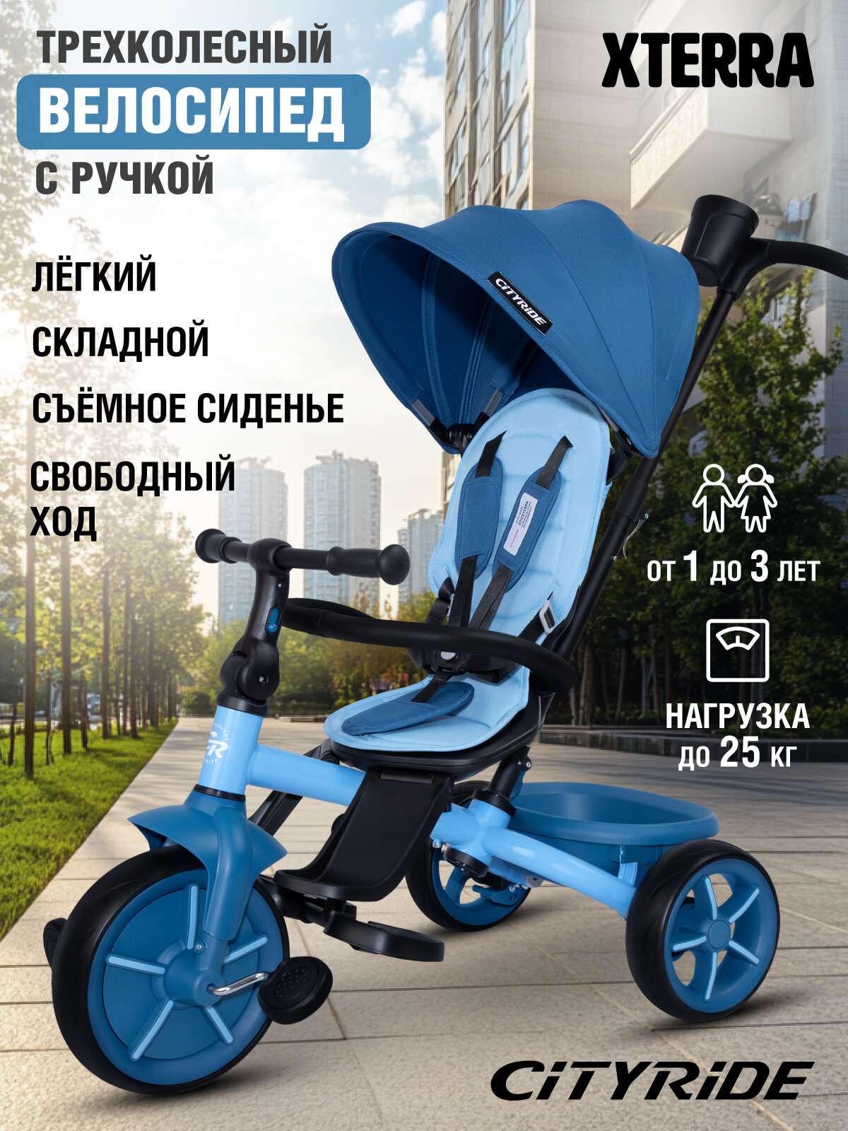 Купить Велосипед детский трехколесный CITYRIDE XTERRA, складная крыша, колеса EVA 11″/9″, CR-B3-12GN с доставкой по всей России.