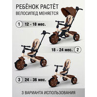 Представляем трехколесный велосипед CITYRIDE XTERRA. При разработке этого велосипеда мы опирались, прежде всего, на требования родителей, к тому, как должен выглядеть многофункциональный, легкий, комфортный и, главное, безопасный велосипед для детей. • Прочная и легкая стальная рама • Складная крыша колясочного типа с фиксаторами положения, которая очень просто отстегивается • Новая форма пластиковых подножек для малышей, складные подножки «для отдыха», чтобы малышу было более комфортно • Большой практичный багажник для любимых игрушек и мелочей • Подстаканник для детских бутылочек. • Эргономичная родительская ручка управления регулируется по высоте, позволяет с легкостью управлять велосипедом за счет поворота переднего колеса • Комфорт малышей прежде всего - мягкое сиденье лицом к маме и лицом по ходу движения. При желании, сиденье можно снять, сложить и отправиться, взяв велосипед, в путешествие на авто. • 3 угла наклона спинки, максимальный наклон - 150 градусов для максимального комфорта ребенка, чтобы было удобно спать • Разъемный бампер безопасности уберегает маленького непоседу от возможного падения • Пятиточечный ремень безопасности с защитными мягкими накладками обеспечивает максимальную и комфортную фиксацию • Складной руль Фактурные колеса EVA диаметром 11 и 9 дюймов, надежные и прочные, не требуют подкачки. Диски колес по дизайну не уступают дискам спорткаров. • Свободный ход переднего колеса, чтобы ребенок мог отдохнуть, велосипедом при этом управляет взрослый • Классический тормоз задних колес для безопасной стоянки Упрощенная сборка Максимальная нагрузка 25 кг