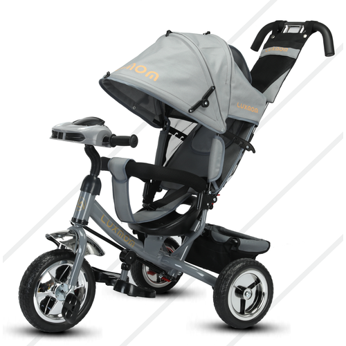 Купить Велосипед детский трехколесный Luxmom 5588 серый, звук, свет, родительска ручка, подставка под ножки с доставкой по всей России.