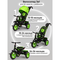 Купить Велосипед детский трехколесный с родительской ручкой и с капюшоном, салатовый с доставкой по всей России.