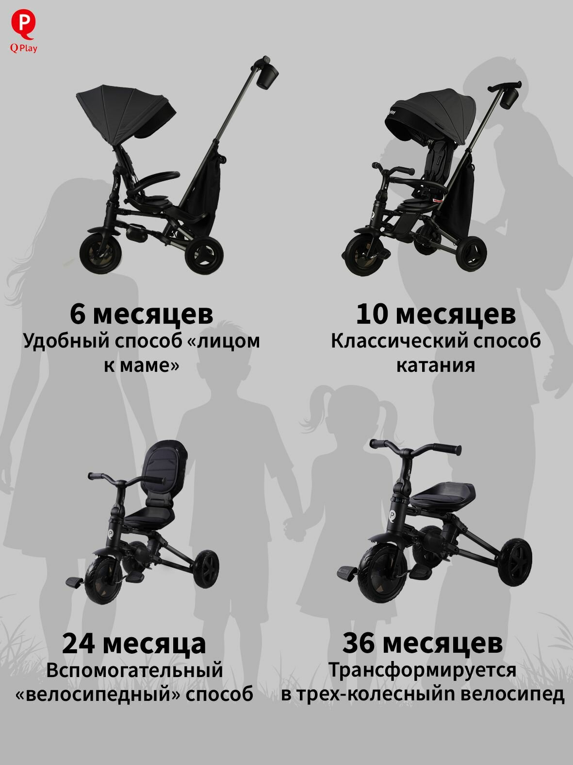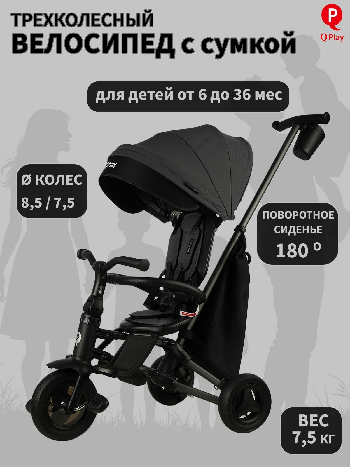 Велосипед детский трехколесный с ручкой TechTeam Ricco черный
