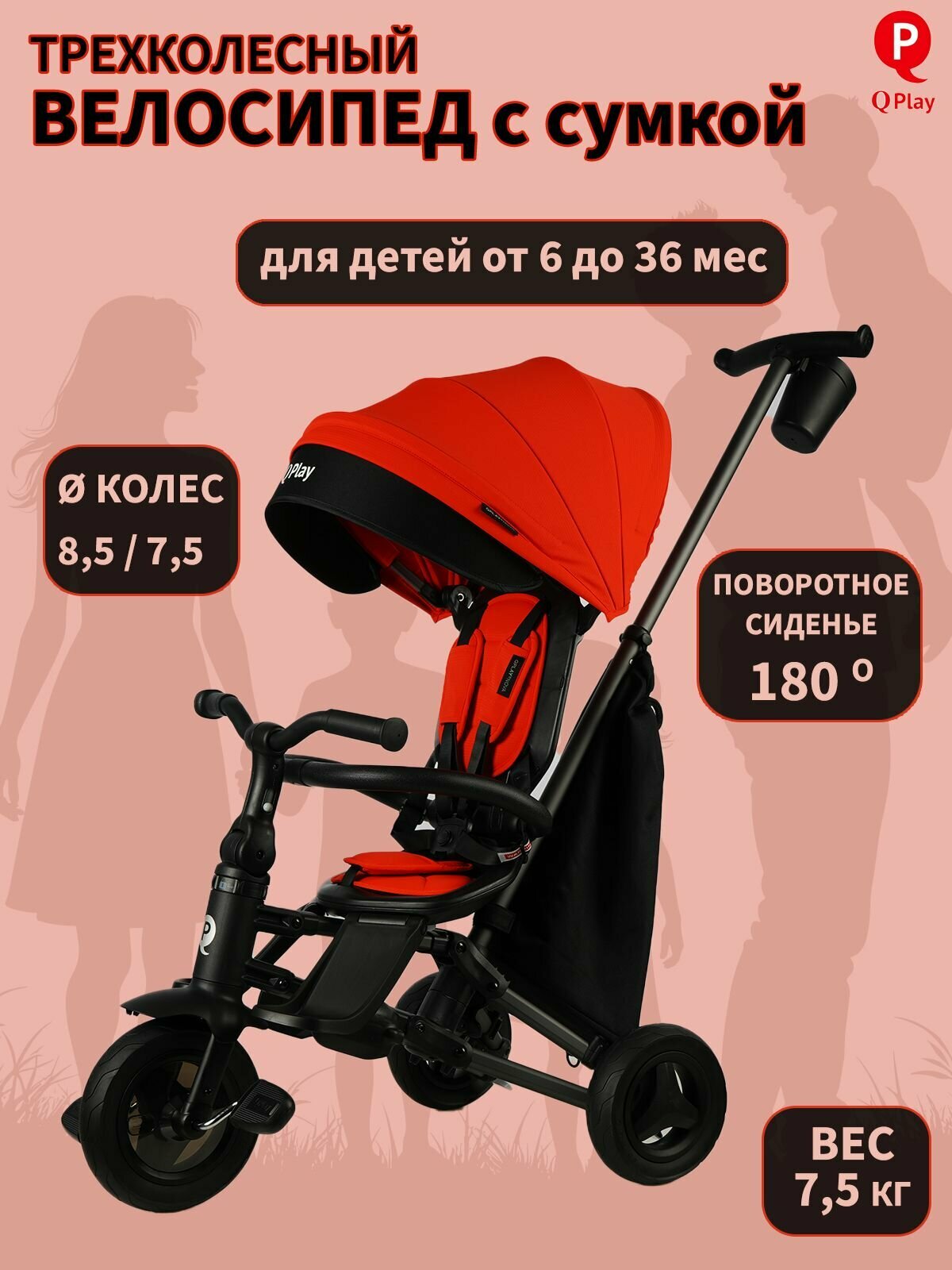Трехколесный велосипед QPlay Ant Basic Trike, складной, красный