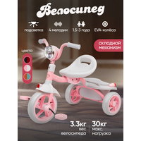 Купить Велосипед детский трехколесный SAFARI PROFF, розовый, свет, звук, складной с доставкой по всей России.