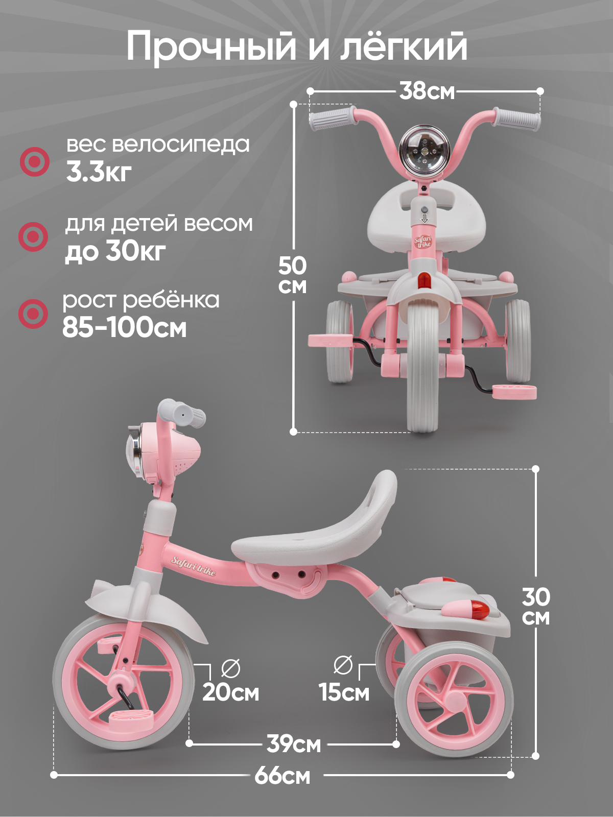 Велосипед детский трехколесный SAFARI PROFF, розовый, свет, звук, складной: сравнение цен, характеристики, фото, актуальное наличие и цены.