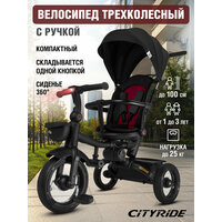 Купить Велосипед детский трехколесный складной CITYRIDE, капюшон, выдвижная ручка, колеса EVA 10″/8″, CR-B3-13EB с доставкой по всей России.