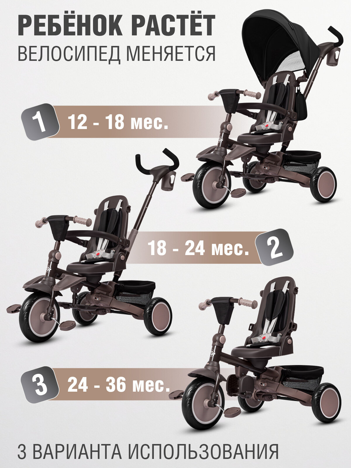 Велосипед детский трехколесный складной CITYRIDE, капюшон, выдвижная/складная ручка, колеса EVA 9.5″/7.5″, CR-B3-14BN: сравнение цен, характеристики, фото, актуальное наличие и цены.