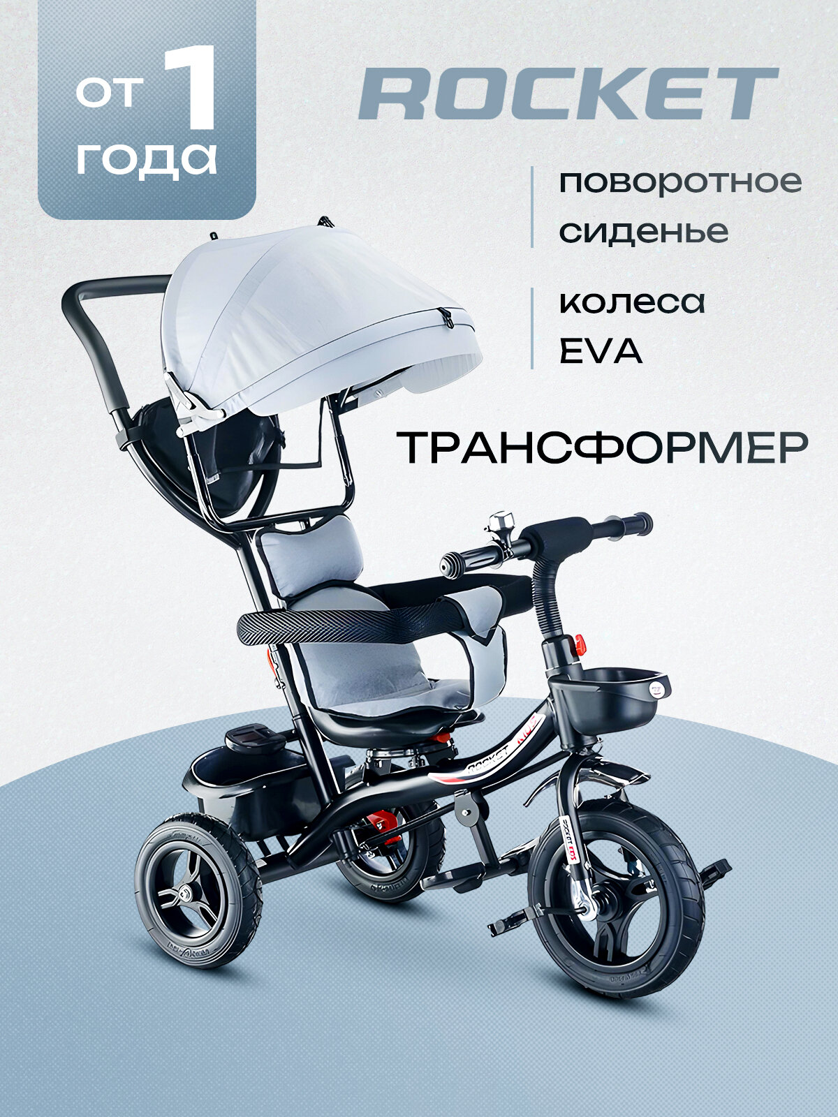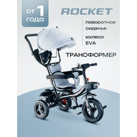 Купить Велосипед детский трёхколесный, с родительской ручкой и козырьком, серый ROCKET 5188FB-3 с доставкой по всей России.