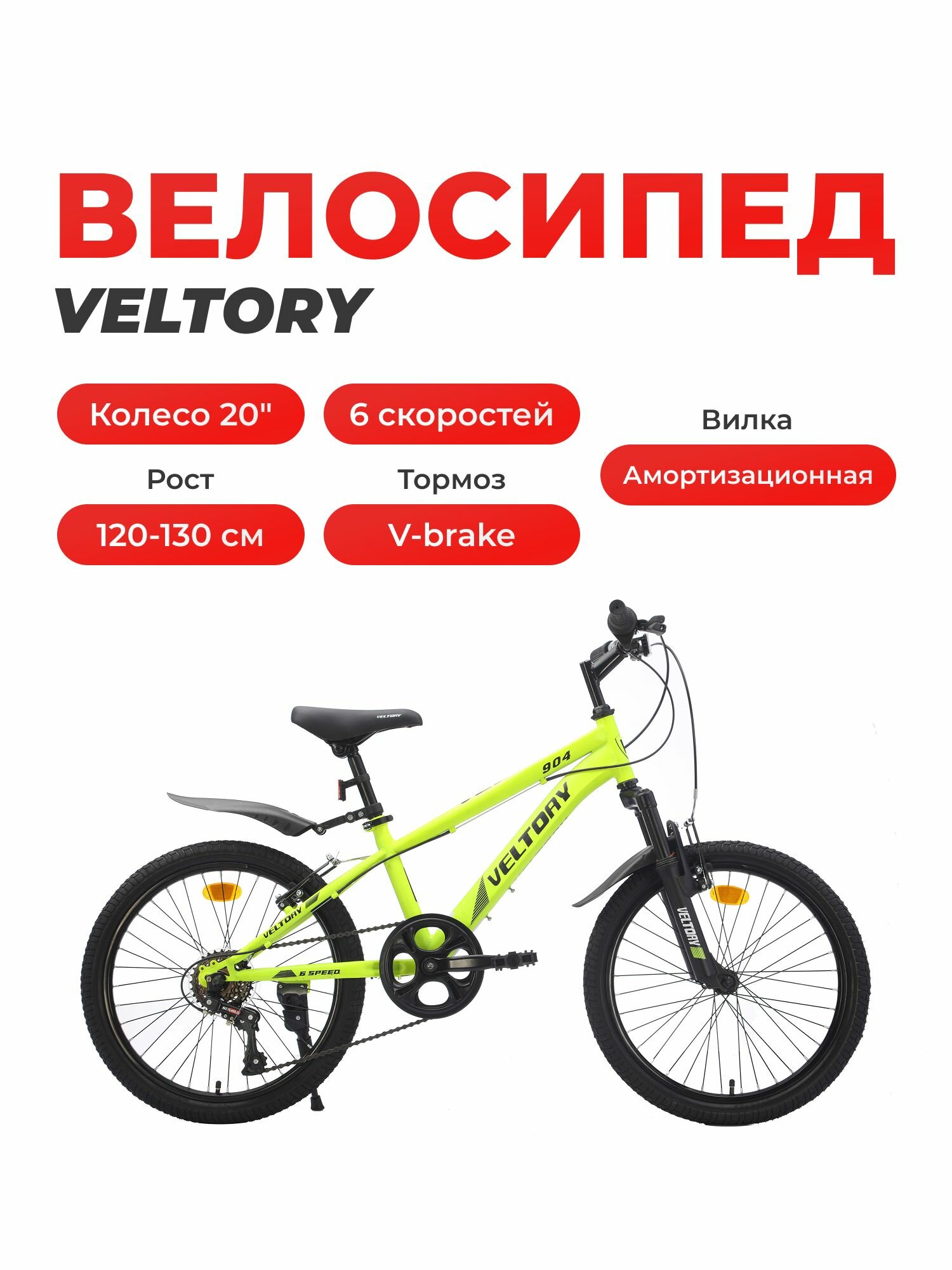 Купить Велосипед детский VELTORY 20V-904, желтый неон, колесо 20D, на рост 120-140см (7-11 лет) с доставкой по всей России.