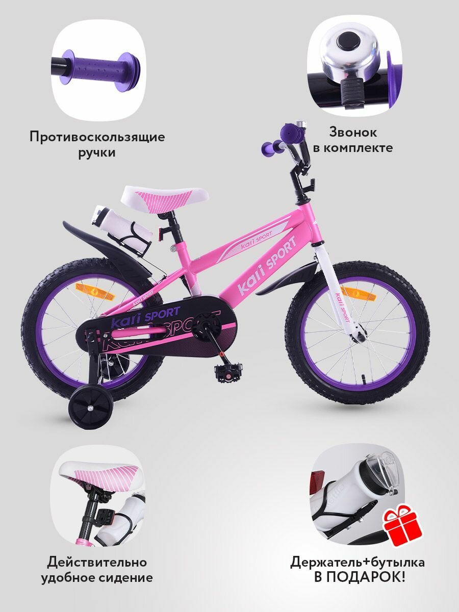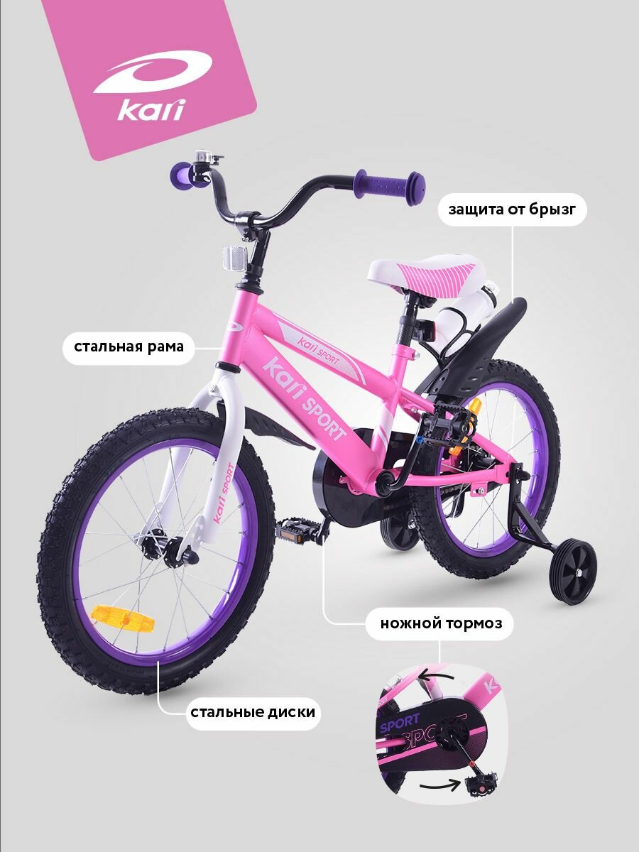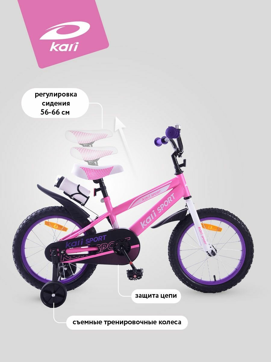 Велосипед двухколесный kari детский 16 дюймов, розовый, цвет белый, розовый: сравнение цен, характеристики, фото, актуальное наличие и цены.