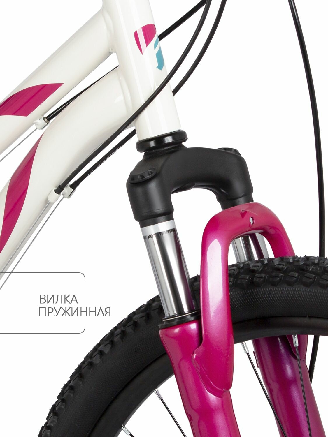 FOXX SALSA – это женский горный велосипед, вобравший в себя надежные и практичные решения. Прочная стальная рама наделяет этот двухколесный велик хорошим уровнем комфорта в катании, благодаря высоким амортизирующим свойствам металла. Выверенная с учетом физиологических аспектов женская геометрия обеспечивает удобную посадку на велобайке. Шестискоростная трансмиссия с тремя звездами спереди упрощает катание по сложному рельефу, что положительно сказывается на характеристиках этого универсального внедорожного велосипеда. Дополнительный комфорт обеспечивается благодаря интегрированному выносу с большим подъемом и рулю анатомической формы. К тому же, удобство катанию добавляют широкое мягкое седло и неприхотливая амортизационная вилка. Надежные дисковые механические тормоза позволяют быстро и плавно затормозить, делая скоростной велосипед взрослый отличным выбором как для спортивного райдинга, так и для прогулочного городского или дорожного использования. Эта модель выпускается в трех размерах, во всех используются колеса стандарта 26". FOXX SALSA подойдет любительницам велоспорта самого разного уровня – этот легкий и простой в управлении хардтейл одинаково хорош как для неспешных поездок по парку, так и для активных выездов на природу. Выполнен в стильном дизайне, что несомненно важно для девушек. Идеальный обычный скоростник для тех, кто ценит баланс надежности и комфорта!