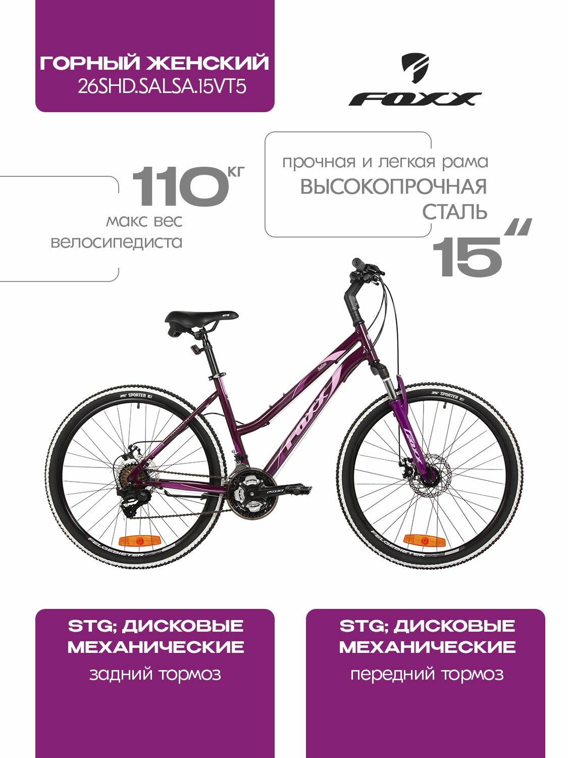 Купить Велосипед женский горный FOXX 26″ SALSA скоростной, фиолетовый, размер 15 с доставкой по всей России. Велосипед женский горный FOXX 26″ SALSA скоростной, фиолетовый, размер 15: сравнение цен, характеристики, фото, актуальное наличие и цены.