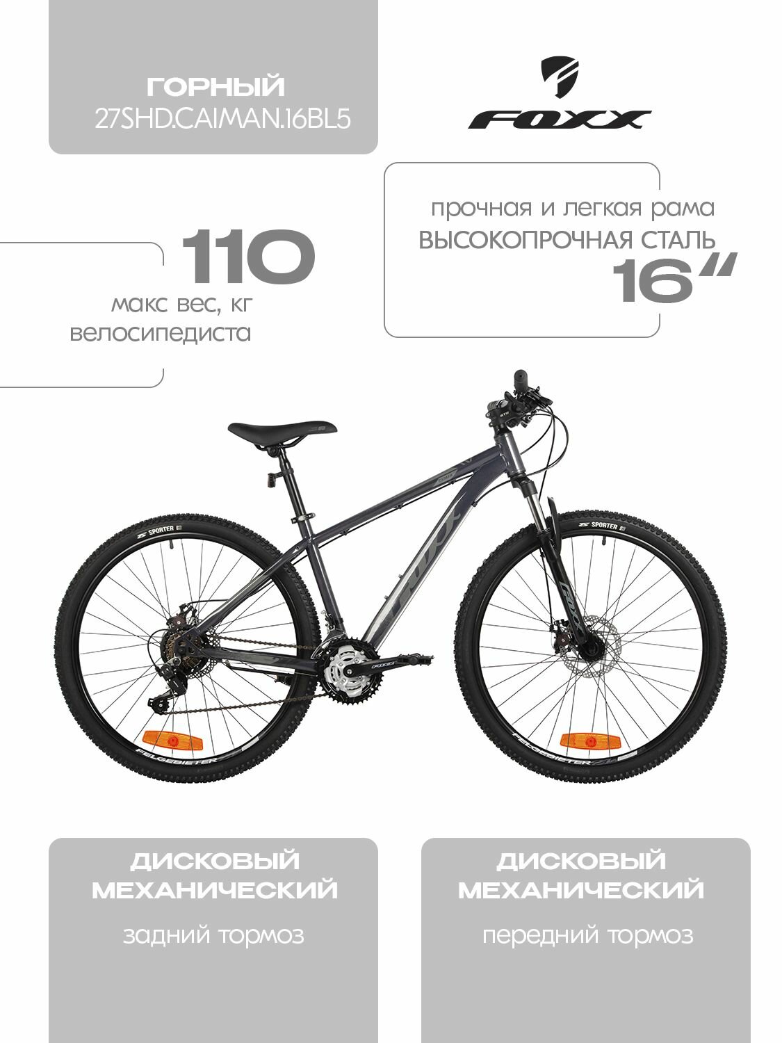 Велосипед FOXX 27.5″ CAIMAN синий, сталь, размер 16: сравнение цен, характеристики, фото, актуальное наличие и цены.