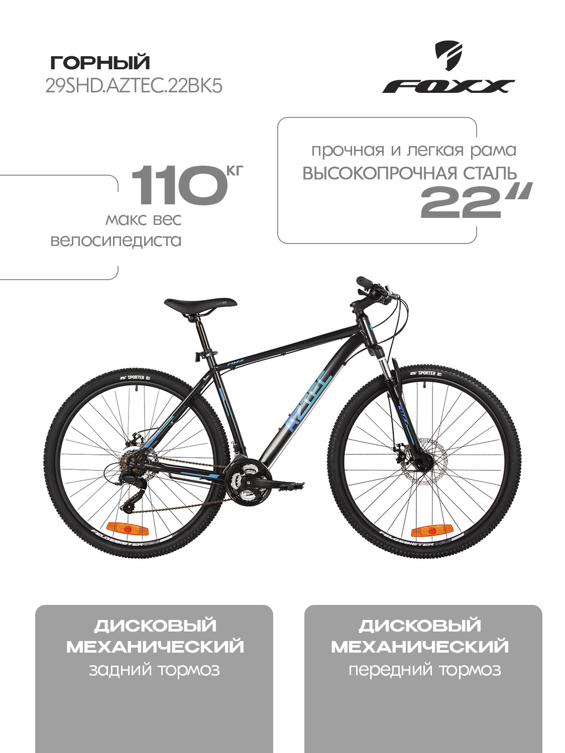 Велосипед FOXX AZTEC, горный, стальной, 21 скорость, 22-й размер рамы, черный: сравнение цен, характеристики, фото, актуальное наличие и цены.