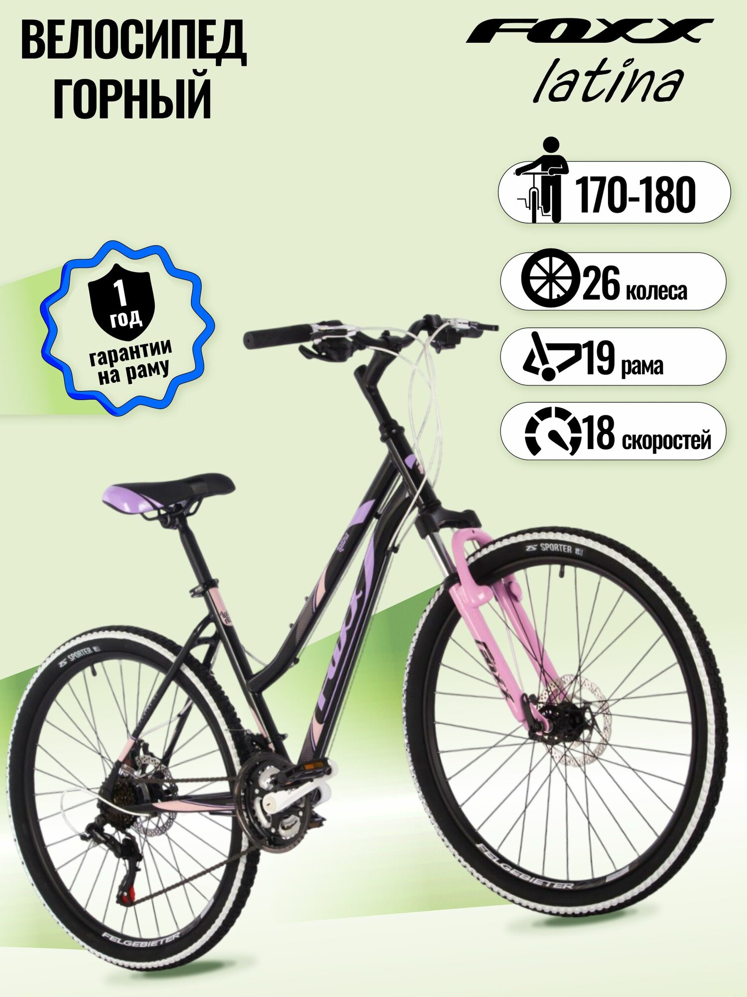 Велосипед FOXX горный женский LATINA, колеса 26, рама 19, Черный, на рост 170-180: сравнение цен, характеристики, фото, актуальное наличие и цены.
