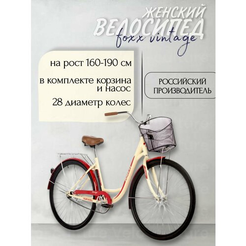 Купить Велосипед FOXX городской VINTAGE, колеса 28, рама 18, бежевый, на рост 155-190 с доставкой по всей России.
