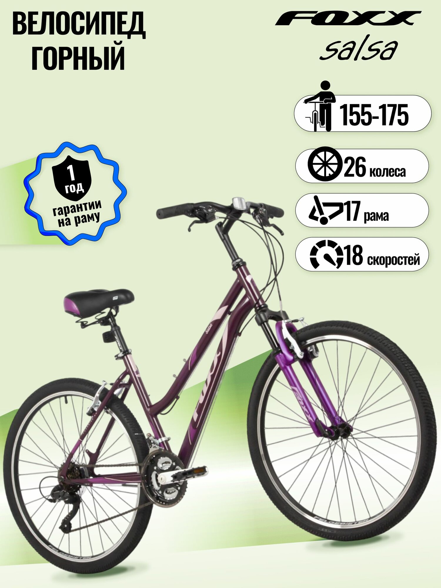 Велосипед FOXX горный женский SALSA, колеса 26, рама 17, фиолетовый, на рост 155-175: сравнение цен, характеристики, фото, актуальное наличие и цены.