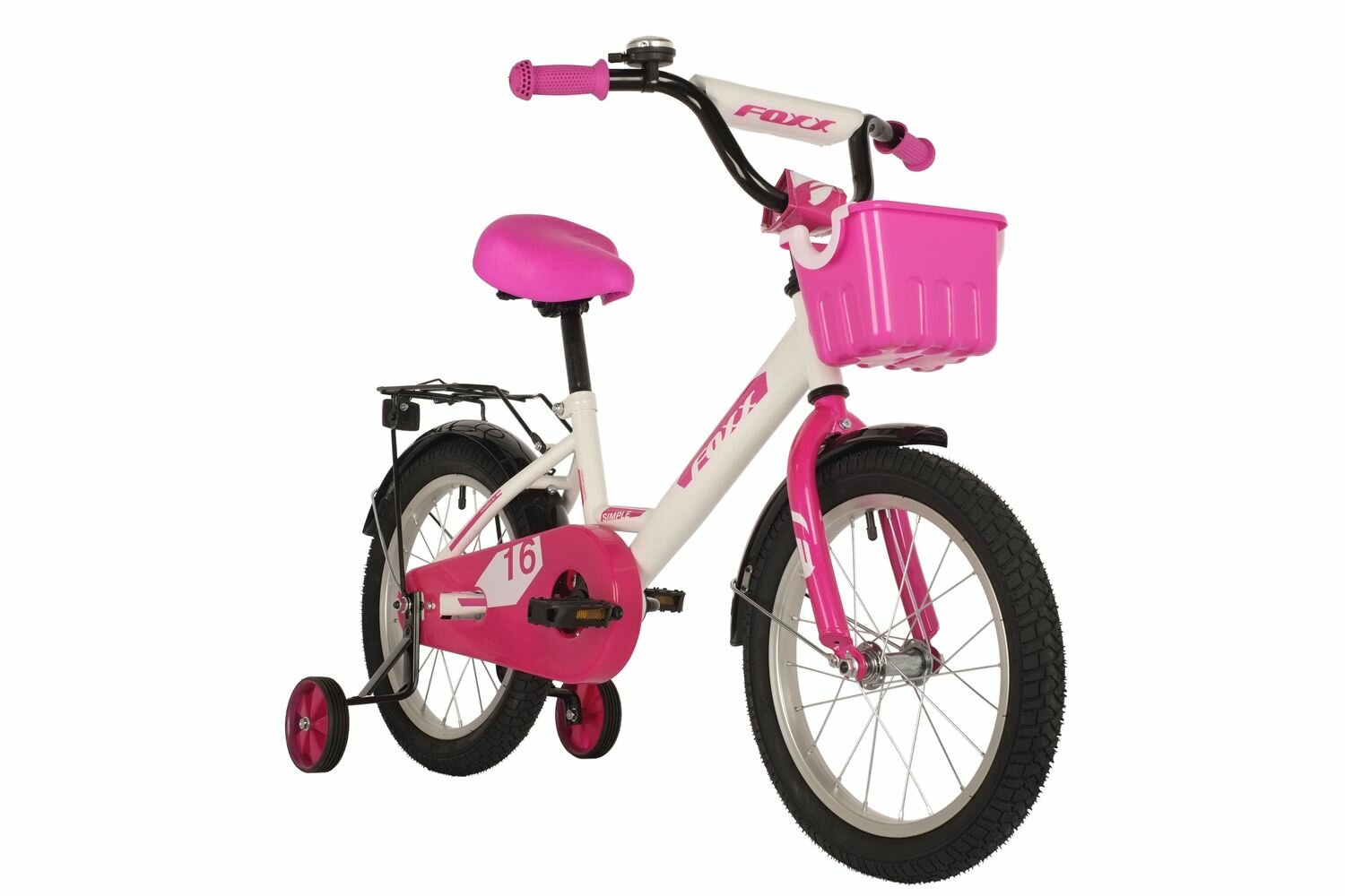 Велосипед FOXX SIMPLE 16″ (2021) (Велосипед FOXX 16″ SIMPLE белый, сталь, тормоз нож, крылья, багажник, перед. корзина, полная защ. цепи): сравнение цен, характеристики, фото, актуальное наличие и цены.