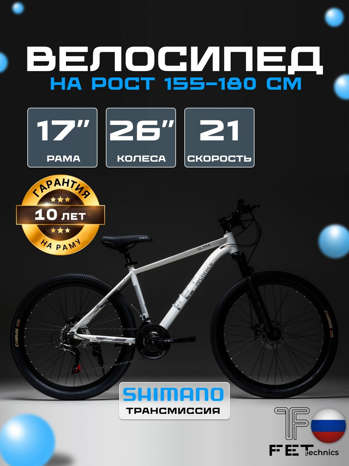 Велосипед горный 26″, FET technics Ultra, белый черный, алюминиевая рама, Shimano, дисковые тормоза: сравнение цен, характеристики, фото, актуальное наличие и цены.