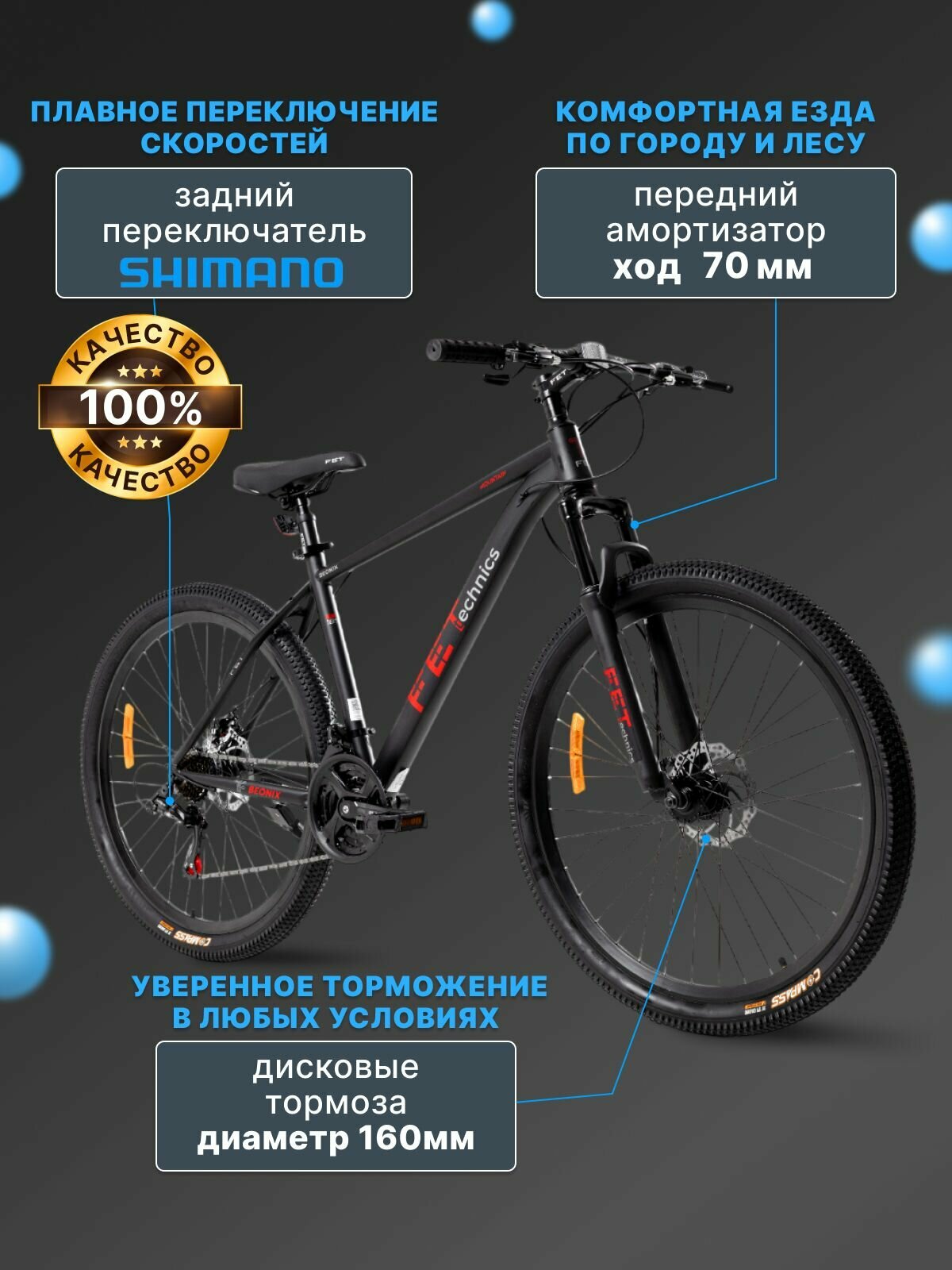 Купить Велосипед горный 27,5″, FET technics Beonix, черный красный, Shimano, дисковые тормоза с доставкой по всей России.