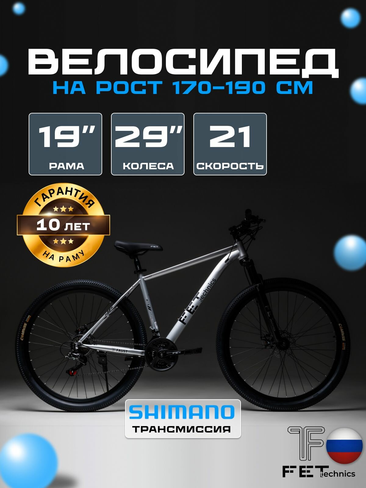 Купить Велосипед горный 29″, FET technics Faust, серебро металлик, Shimano, дисковые тормоза с доставкой по всей России.