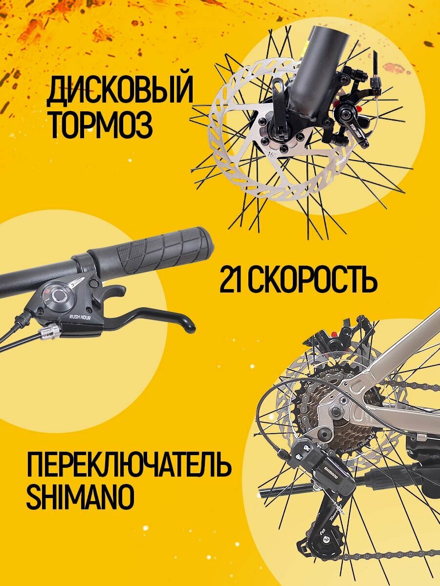 Велосипед алюминиевый взрослый горный 29″ RUSH HOUR XS 925 21 скорость серый рама 21″ рост 180-200 см. скоростной для мужчин спортивный с амортизацией переключатель SHIMANO дисковый: сравнение цен, характеристики, фото, актуальное наличие и цены.
