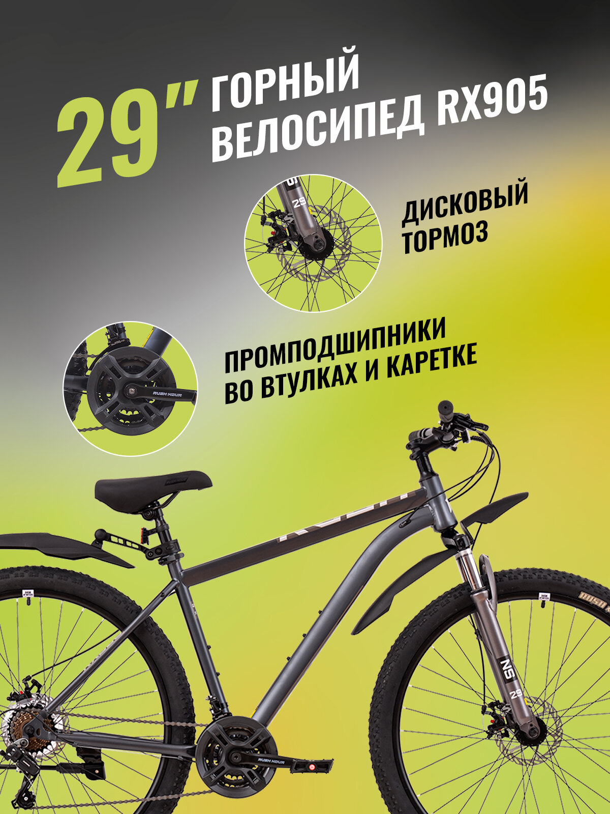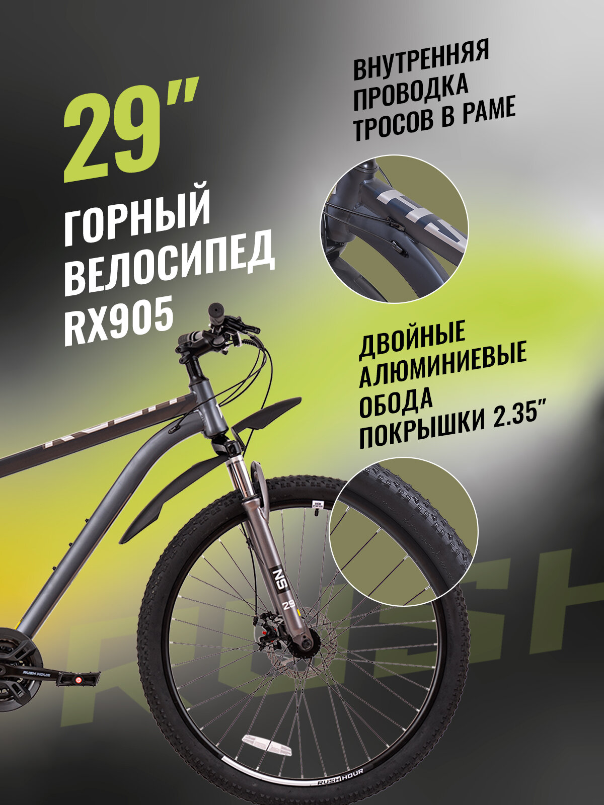 Велосипед горный дисковый 29″ рост 170-185см 21 скорость графит рама 19″. велик взрослый переключатель SHIMANO скоростной найнер RUSH HOUR RX 905: сравнение цен, характеристики, фото, актуальное наличие и цены.