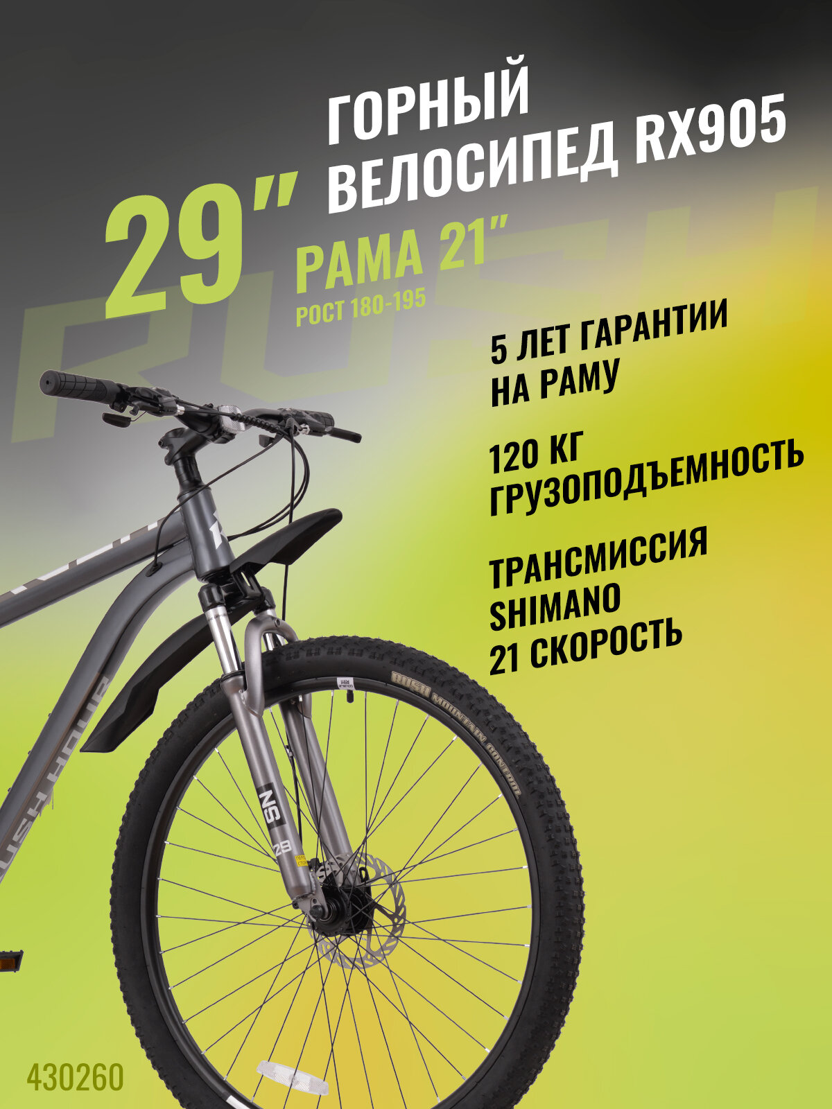 Велосипед горный дисковый 29″ рост 180-195см 21 скорость графит рама 21″. велик взрослый переключатель SHIMANO скоростной найнер RUSH HOUR RX 905: сравнение цен, характеристики, фото, актуальное наличие и цены.