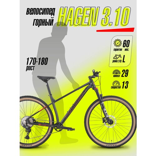 Велосипед горный Hagen 3.10, колесо 29, рама L(18), на рост 170-180, черный матовый: сравнение цен, характеристики, фото, актуальное наличие и цены.