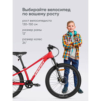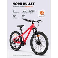 Велосипед горный HORH BULLET HBHD4.0 24″ (2025) Red-White для подростков на рост 130-150 см, алюминиевая рама 12″