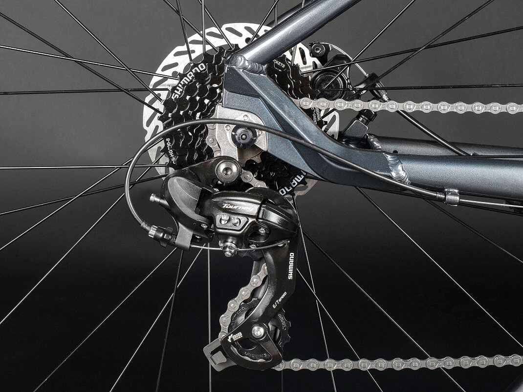 Алюминиевая рама обладает низким весом и устойчивостью к коррозии, что обеспечивает долгий срок службы и комфорт во время катания. Оборудование Shimano Tourney начального уровня гарантирует надёжность и долговечность компонентов, позволяя вам наслаждаться катанием без лишних забот.