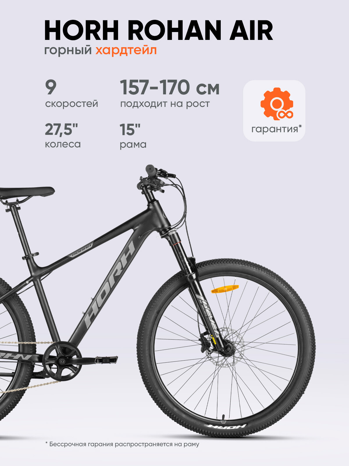 Купить Велосипед горный HORH ROHAN AIR RHD7.4 27,5″ (2025) Black-Grey, для взрослых на рост 157-170 см, алюминиевая рама 15″ с доставкой по всей России.