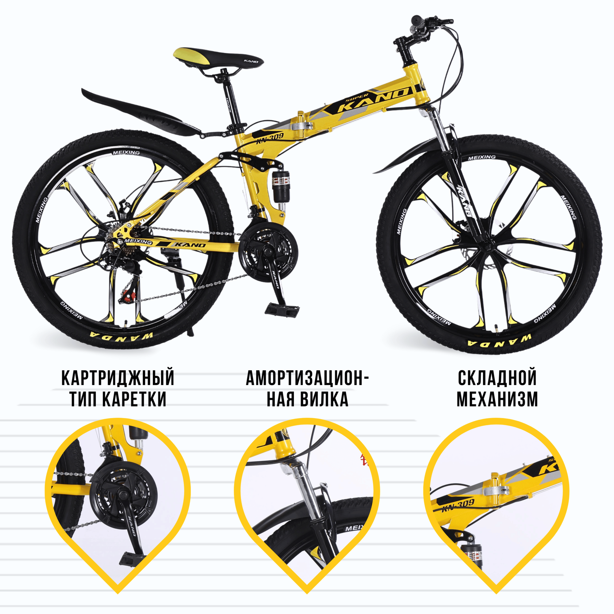 Купить Велосипед горный KANO складной, 26″, 24 скорости, 17 рама, 110 кг максимальная нагрузка с доставкой по всей России.