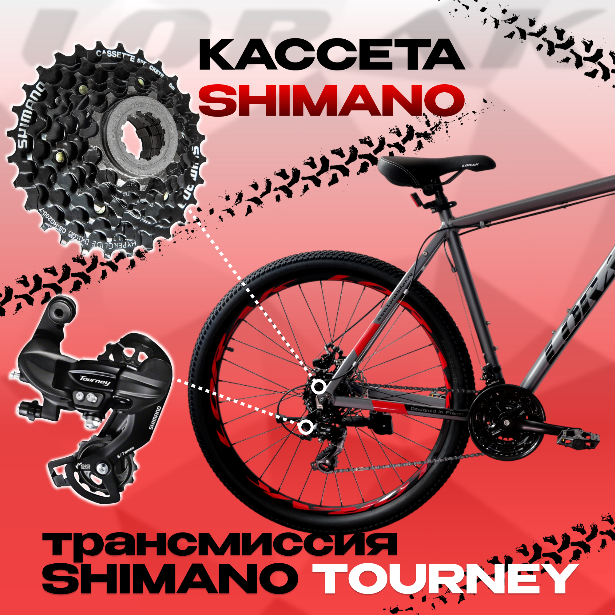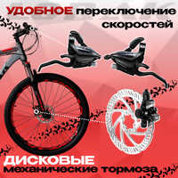 Велосипед оснащен 21 скоростью, что позволяет выбрать оптимальный режим езды в зависимости от рельефа и скорости.
