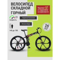 Велосипед Горный MTO Ride 26″, 2023, 15″, черно-красный литые диски