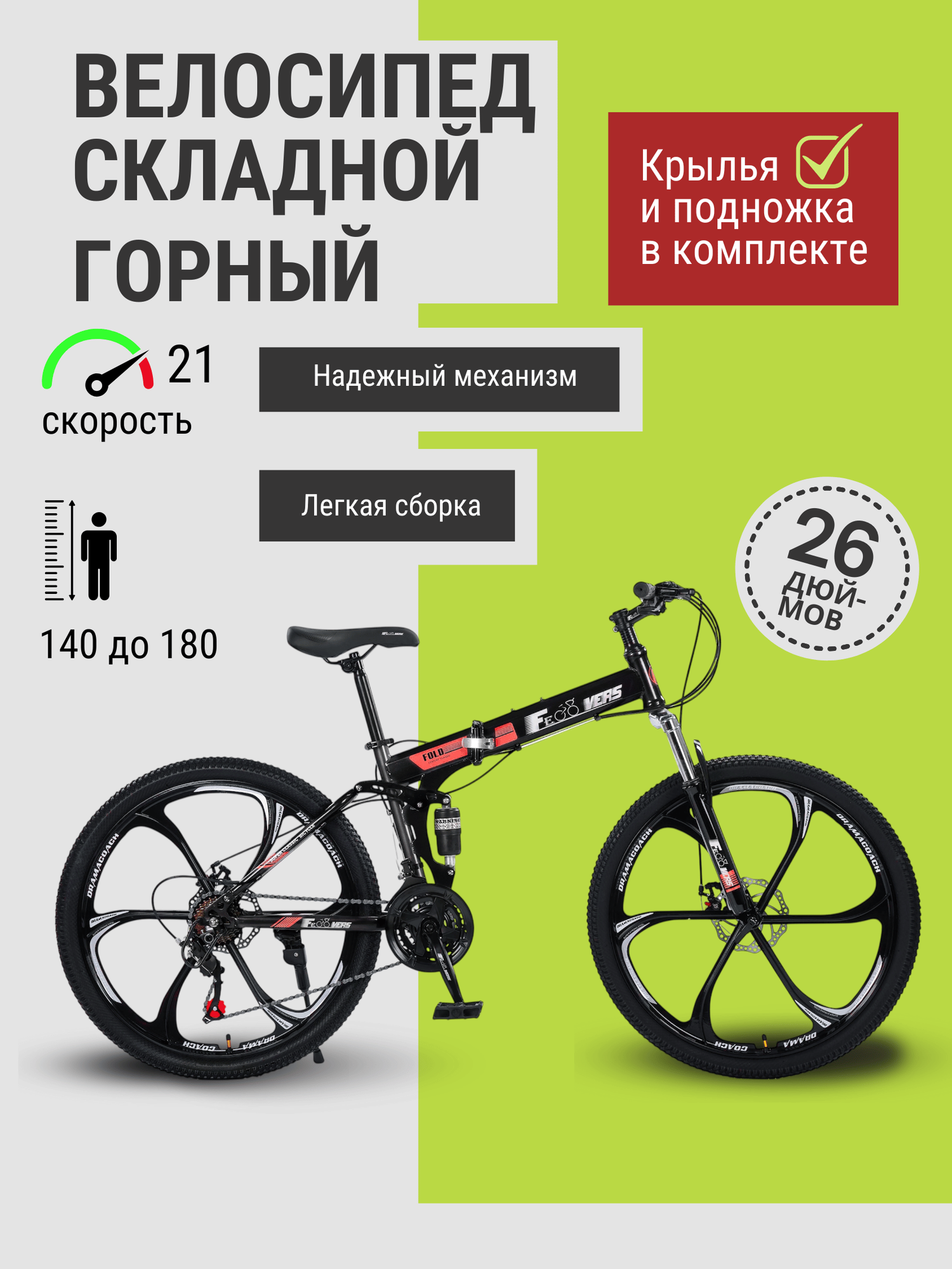 Велосипед Горный MTO Ride 26", 2023, 17", зеленый складной