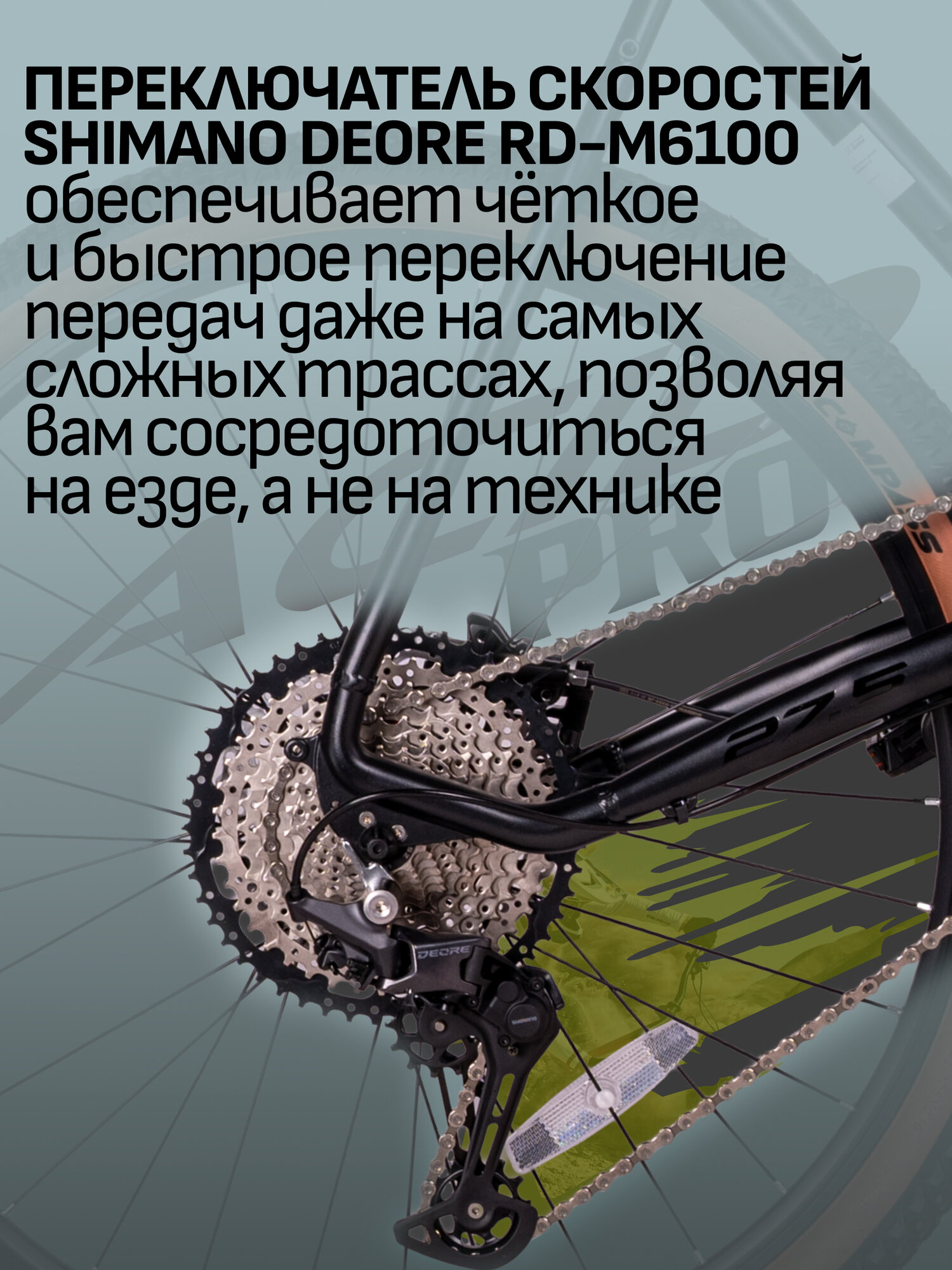 | Наименование заднего переключателя | Shimano Deore RD-M6100 |
