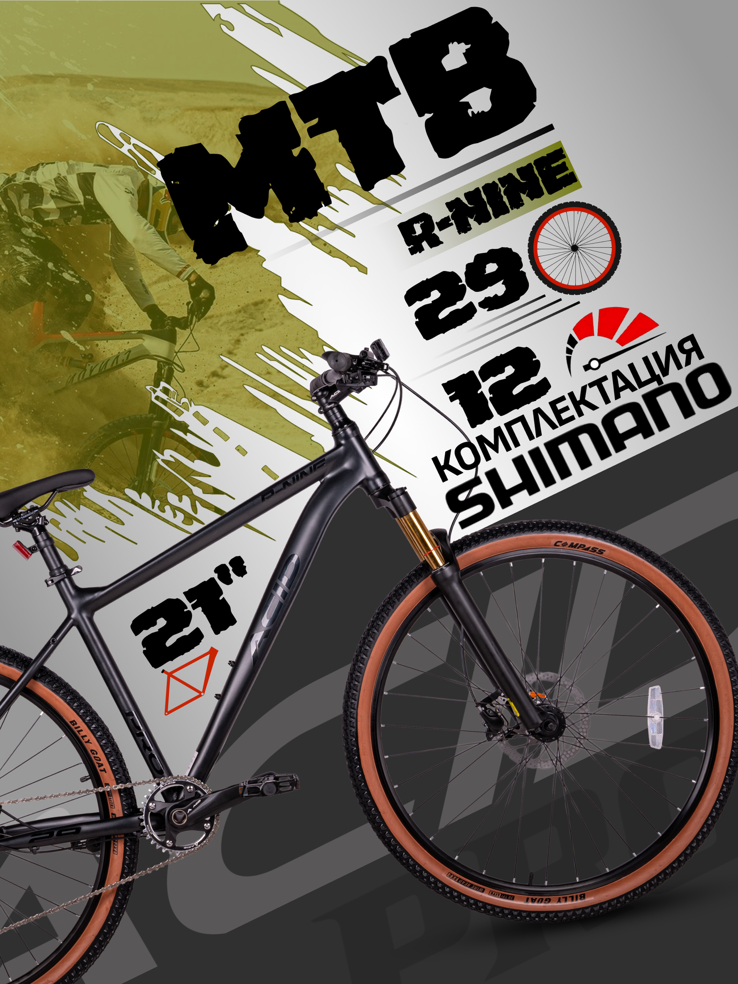 | Наименование покрышек | 29x2,1 дюйма (30 TPI) |