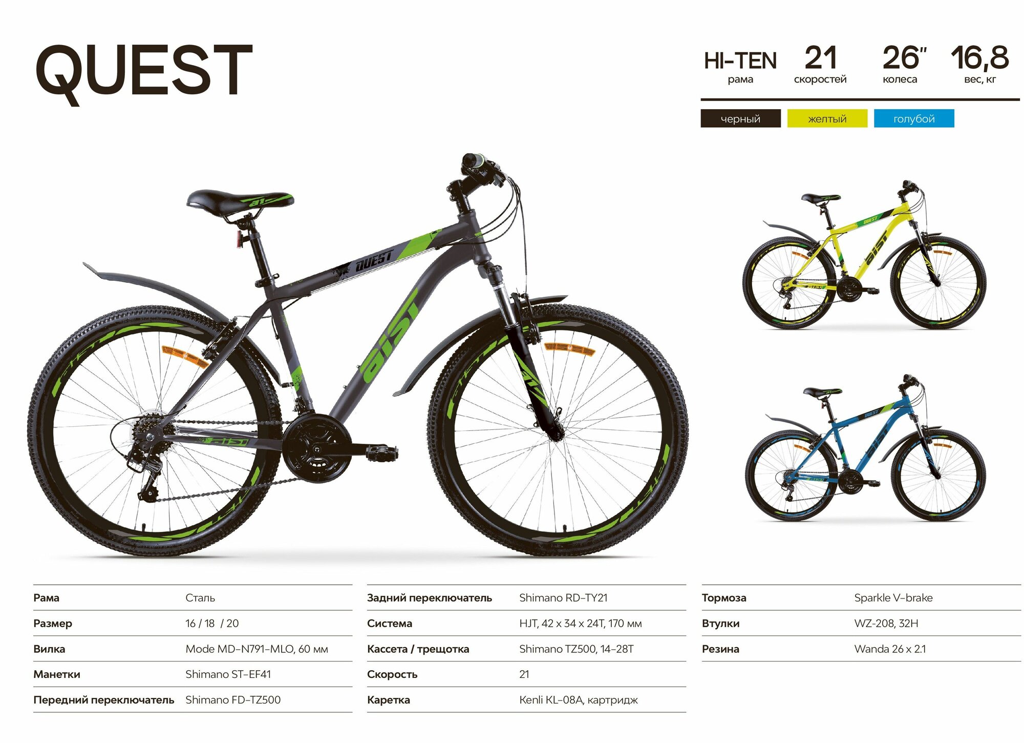Велосипед горный спортивный аист AIST Quest, размер колес 26″, размер рамы 18″, количество скоростей 21, черный: сравнение цен, характеристики, фото, актуальное наличие и цены.
