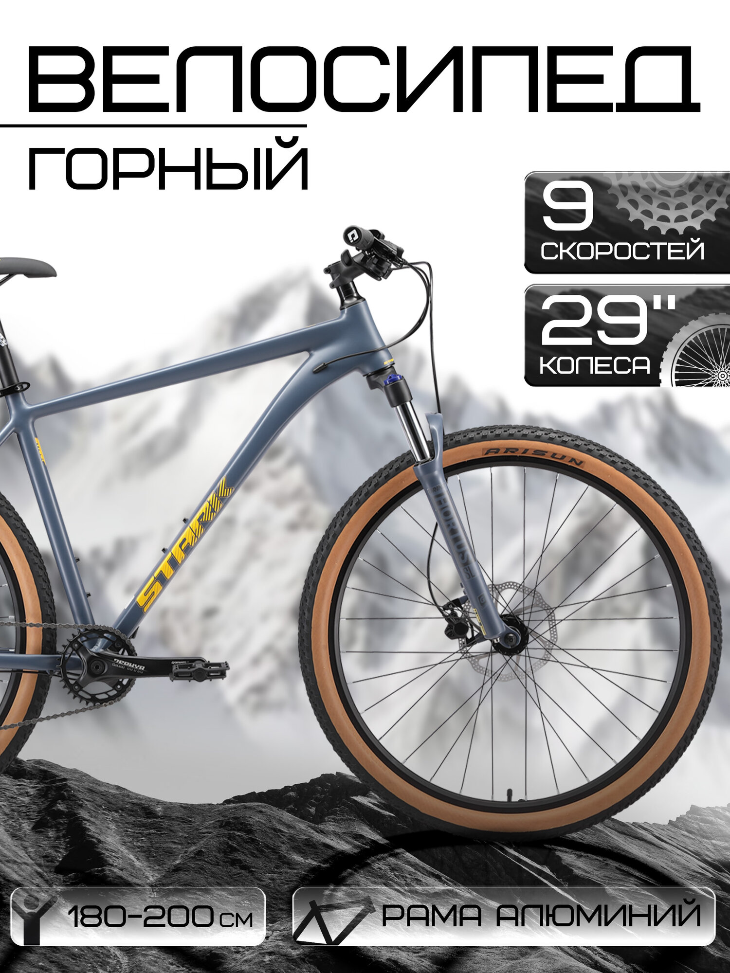 Купить Велосипед горный Stark Router 29.3, колеса 29 дюймов, алюминиевая рама 20, 9 скоростей, HD, сине-серый матовый/теплый желтый, 2025 с доставкой по всей России.