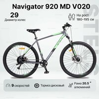 Горный велосипед Stels Navigator 920 MD 29" V020 представляет собой модель качественного многоскоростного маунтинбайка начального уровня, предназначенного для путешествий по хорошим дорогам, а также для преодоления участков трасс с плохим дорожным покрытием. Байк отличает от аналогов надежное навесное оборудование и увеличенные колеса, имеющие размер 29 дюймов. Основной элемент любого велосипеда – это рама. У «Навигатора 920» она представляет собой классическую форму горного байка. Основная труба увеличенного размера проходит от рулевой колонки до системы. Основная нагрузка приходится именно на эту часть рамы, поэтому труба имеет большую толщину. Дополнительные трубы – это горизонтальная и вертикальная трубы, образующие вместе с основной форму треугольника. Рама изготавливается из алюминия и отличается высокой прочностью и виброгашением при относительно низком весе. Байк доступен в трех размерах, что дает возможность райдеру подобрать наилучший вариант под свой рост. Байк Navigator 920 MD 29 V020 – это «найнер» с увеличенными 29-дюймовыми колесами, что является несомненным преимуществом велосипеда. Благодаря большим колесам райдеру проще проходить сложные участки трасс, поддерживать высокую скорость передвижения, а также преодолевать крутые подъемы с минимально прикладываемыми на ноги усилиями. На колеса надеты покрышки шириной 2 дюйма с универсальным протектором, подходящим для асфальта и грунтовых трасс, а также для прохождения грязных участков. Передняя подвеска имеет амортизационную вилку, смягчающую огрехи дорожного покрытия, и отрабатывает неровности в пределах 80-миллиметрового хода. Stels Navigator 920 V020 – это многоскоростной байк с возможностью выбора одной из 9 скоростей. Сзади установлена девятизвездная кассета, а система имеет набор из одной звезды, что в сумме и дает 9 передач. В качестве переключателей и шифтеров применяются японские модели Shimano, получившие широкое распространение среди велолюбителей благодаря идеальному сочетанию низкой стоимости и высокой надежности комплектующих. Правильно подобранная передача упрощает не только процесс прохождения сложных участков, но и облегчает поддержание комфортной скорости, ее набор при старте, а также преодоление крутых подъемов. Stels Navigator 920 MD 29 – это модель с популярной дисковой системой торможения, которая управляется с помощью механического привода. Эффективность работы тормозов напрямую зависит от силы, прикладываемой к рычагам. Например, при спуске с горки можно поддерживать определенную скорость передвижения, слегка сжимая тормозные рычаги, а при необходимости резкой остановки достаточно сильно сжать рычаги. Дисковые тормоза легко настраиваются, а все комплектующие имеют длительный период эксплуатации. Navigator 920 MD 29 является привлекательным для многих райдеров велосипедом, включившим в себя все самое необходимое: надежную алюминиевую раму в трех размерах, большие колеса, переднюю амортизацию, высококачественную трансмиссию, надежные тормоза, комфортное седло и удобный руль. Велосипед подойдет для райдеров практически любого роста, желающих получить универсальный байк для хороших дорог и для бездорожья.