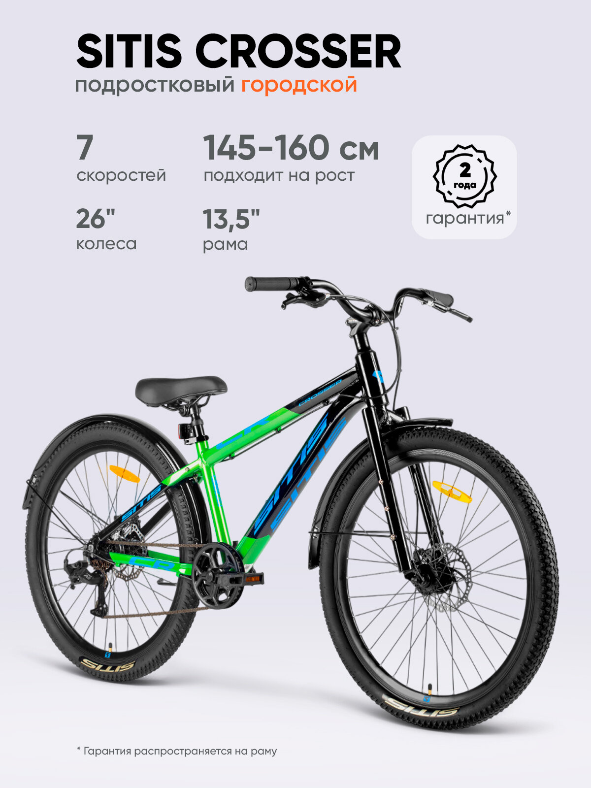 Велосипед городской SITIS CROSSER Regid 7SP 26″ (2025) Black-Green-Blue, для подростков на рост 150-165: сравнение цен, характеристики, фото, актуальное наличие и цены.